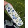 Každý kousek je zdobený jemnou ruční výšivkou inspirovanou borůvčím – drobnými lístky a bobulkami, které se rodí steh po stehu. Výšivka vzniká v malých sériích, takže každá čelenka má své vlastní, nepatrně odlišné detaily.